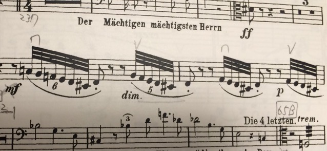 しかし、マエストロははっきり言われた。「6連、5連、4連の違いがはっきりわかるように」と。似たような例で、めまぐるしく和音が変わる場所も容赦無い。必ず変化がわかるようにと指示される。音楽というのは、細かい作業をきちんと積み重ねることで正しい効果が生み出されるのだなあ、手を抜いたらアカンと思い知らされるのだった。