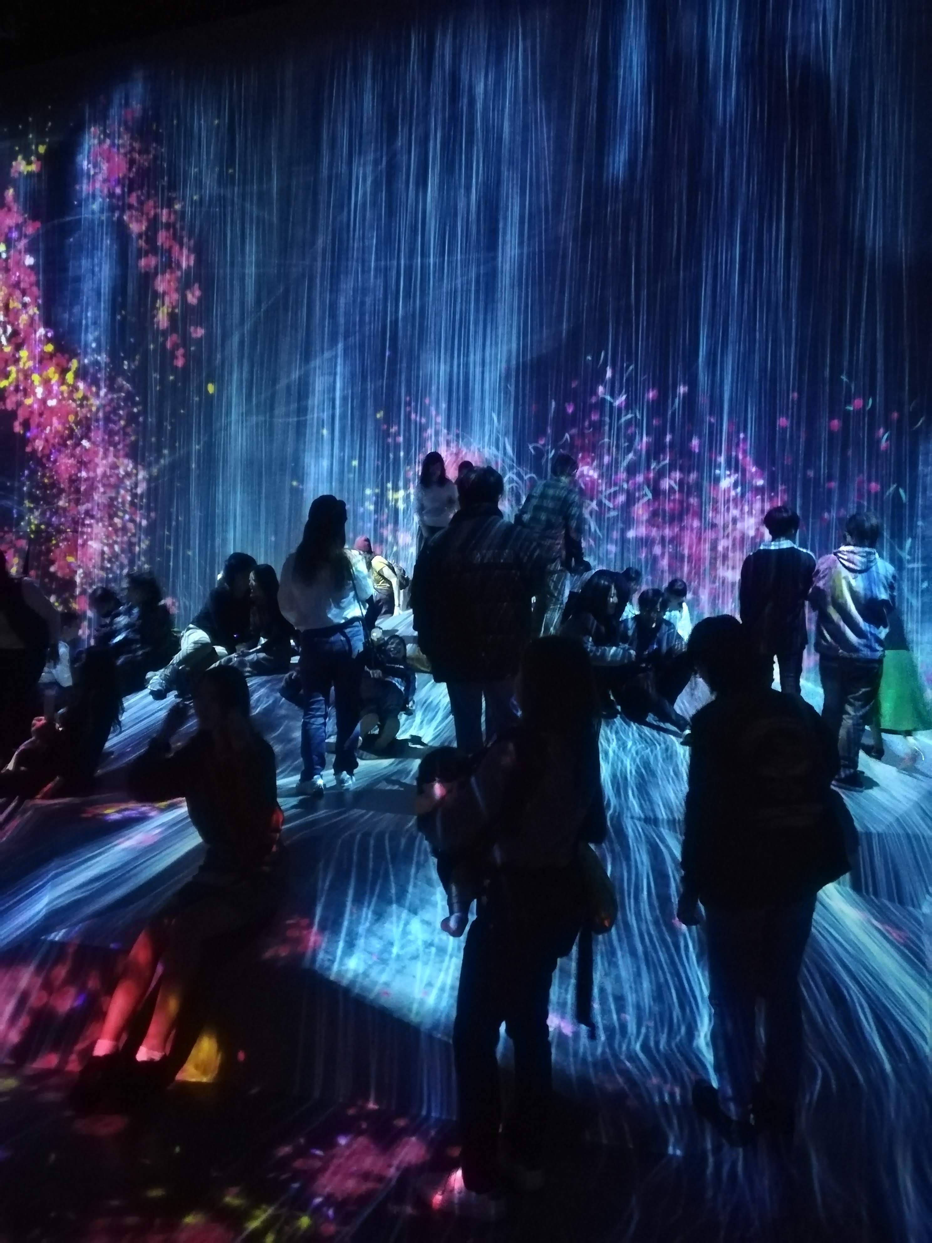 せっかく高い交通費を出して東京へ行くのだから、少し欲を出して物見遊山できるところはないかと探したところ、ちょうどよい場所にチームラボ・ボーダレスを展示しているデジタルアートミュージアムがあったので、娘を誘って見に行くことにした。