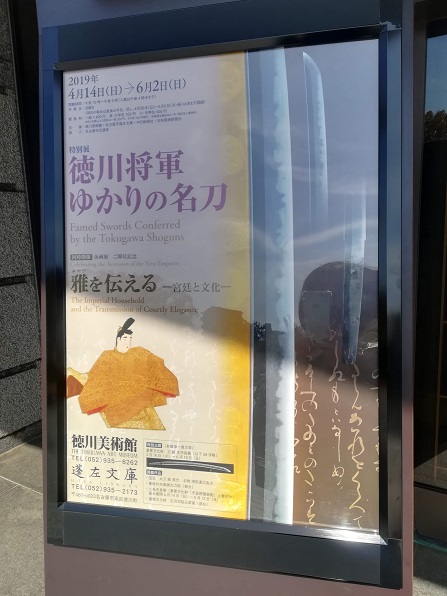 続いて徳川美術館へ。たまたま刀剣の特別展示を行っており、刀剣コーナーの前には長い行列。まだまだブームは続いているのだなあ。自分たちは、刀剣は興味がないので、空いている方の入り口から中へ。尾張徳川家に伝わる数々の品を見学し、元号が変わるというので、天皇家の特集もあり、都の生活の一端も垣間見る。生活用品、衣類、書画のほか、当時のしきたり、決まりごとを書き記した文書まで展示されていた。それらを見てつくづく感じたのは……