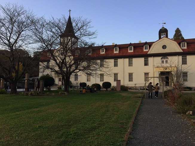 お寺のあとは、すぐ裏手にある多治見修道院へ。紅葉こそないけれど、こざっぱり整えられた前庭の奥に楚々とした白い壁のチャペルが建ち、敬虔な気持ちが呼び覚まされる。礼拝堂の中は撮影禁止なので、外の風景だけ。