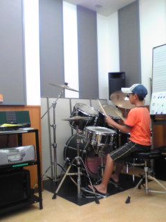 いきなりは無理なので、最初は足だけ、次は足とスネアだけ……という具合に少しずつ難易度を上げる。子どもは心身ともに柔軟なので、大人に比べると随分覚えは早いけれど、さすがに30分では完璧になれず、足がおそろかになったり、シンバルを叩き忘れたり。でもスタイルだけはそれなりに。