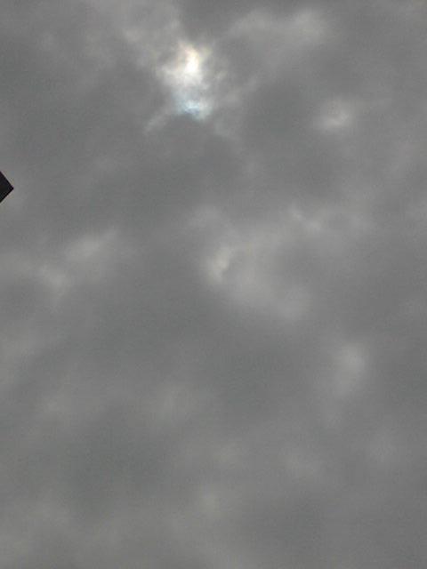 ↑小学校にて、子どもたちのマーチング練習を見守りつつ撮った日食の空。