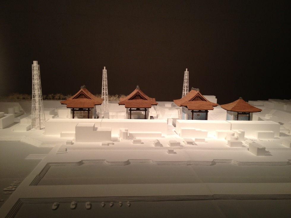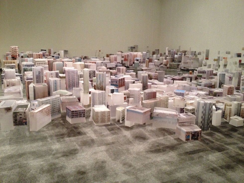 上海近郊の水郷の町に住むハン・フェンによる「空中都市」。一つ一つの建物が極細の糸で吊り下げられているため、展示室内を歩くと、巻き起こったわずかな風で街全体がゆらゆらゆれて、とても危うい印象を受ける。実際に上海の過密都会ぶりを見ているので、すごくしっくりくる。