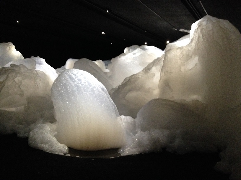 広い会議室一部屋をすべて使用する。部屋の中に砂を敷き詰め、中心部はくぼませて浅い池を作る。池には泡が出るよう、おそらくシャボン液のようなものが入っており、そこに空気を送って延々と泡を生成させる。仕掛けとしてはそれだけだが、絶え間なく生成される泡は巨大な山を作り、端から少しずつ消えては内側から新しい泡が盛り上がってくる、の繰り返し。