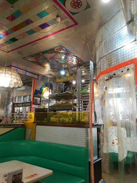 ※店内のキラキラした装飾も個性的だが、個人的に一番気に入ったのが喫煙コーナーとそうでない場所をビニールカーテンで仕切ってあるところ。