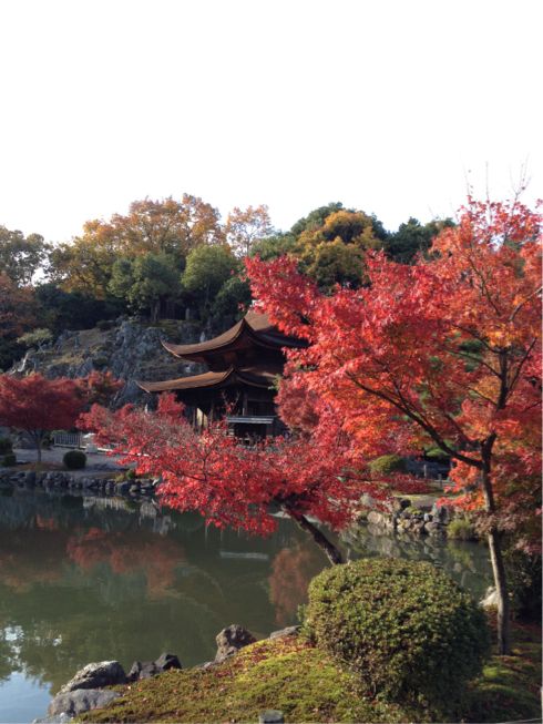 見事な紅葉に彩られたお寺の境内。そのへんの小さな寺院とは違います。広い敷地には紅葉に囲まれた池が点在し、形の良い太鼓橋がかかっている。云われのある観音堂、滝の上には地蔵堂、建立と同時に植えられたという大イチョウの木(樹齢600年以上だとか)、火事にあって再建された修練場などなど、どこを見ても絵になる景色ばかり。煩悩が落ちるどころか眼福すぎてダメです。