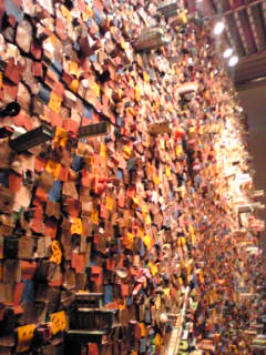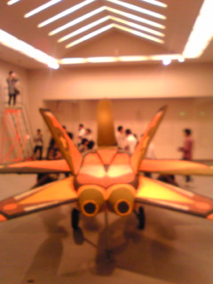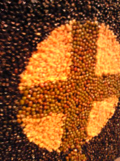 ↑は、フィロズ・マハムドというバングラディシュ生まれのアーティストの作品。豆と穀物で作られた戦闘機。左の写真が後ろから見た全体像で(携帯から撮ったのでブレてます、すみません)、右が細部のアップ。「ここはレンズ豆。これはお米、ここはコーン?」という具合に模様ごとに使い分けてあるのがわかる。